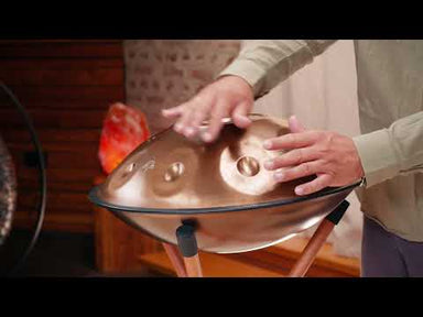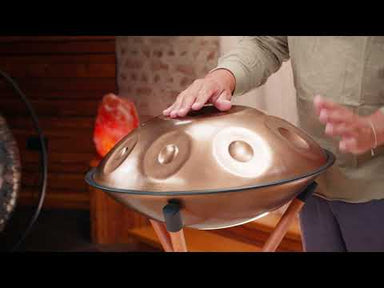 Experience the peaceful Bb2 Amara Scale with this 9-note 432 Hz Sensory Handpan, handcrafted from stainless steel and finished in vintage copper. T...