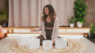 Encourage openness, clarity, and emotional expression with this 4-piece White-Frosted Crystal Singing Bowls Om Set. Crafted from high-purity quartz, these bowls create a very pleasant aura with their sound and design. Their long-lasting, spherical tone spreads when the singing bowl is gently tapped or rubbed so that the energy can be felt in the entire surrounding.