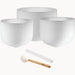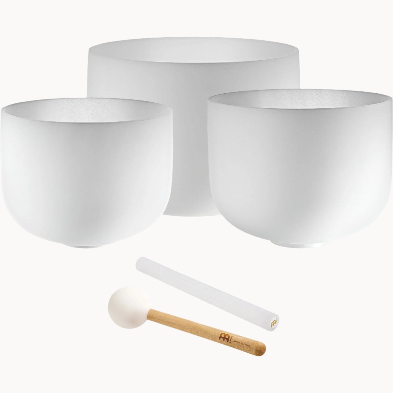 - 3x Highest Purity Quartz White-Frosted Singing Bowls (9” A4; 12" F4; 14" C4)