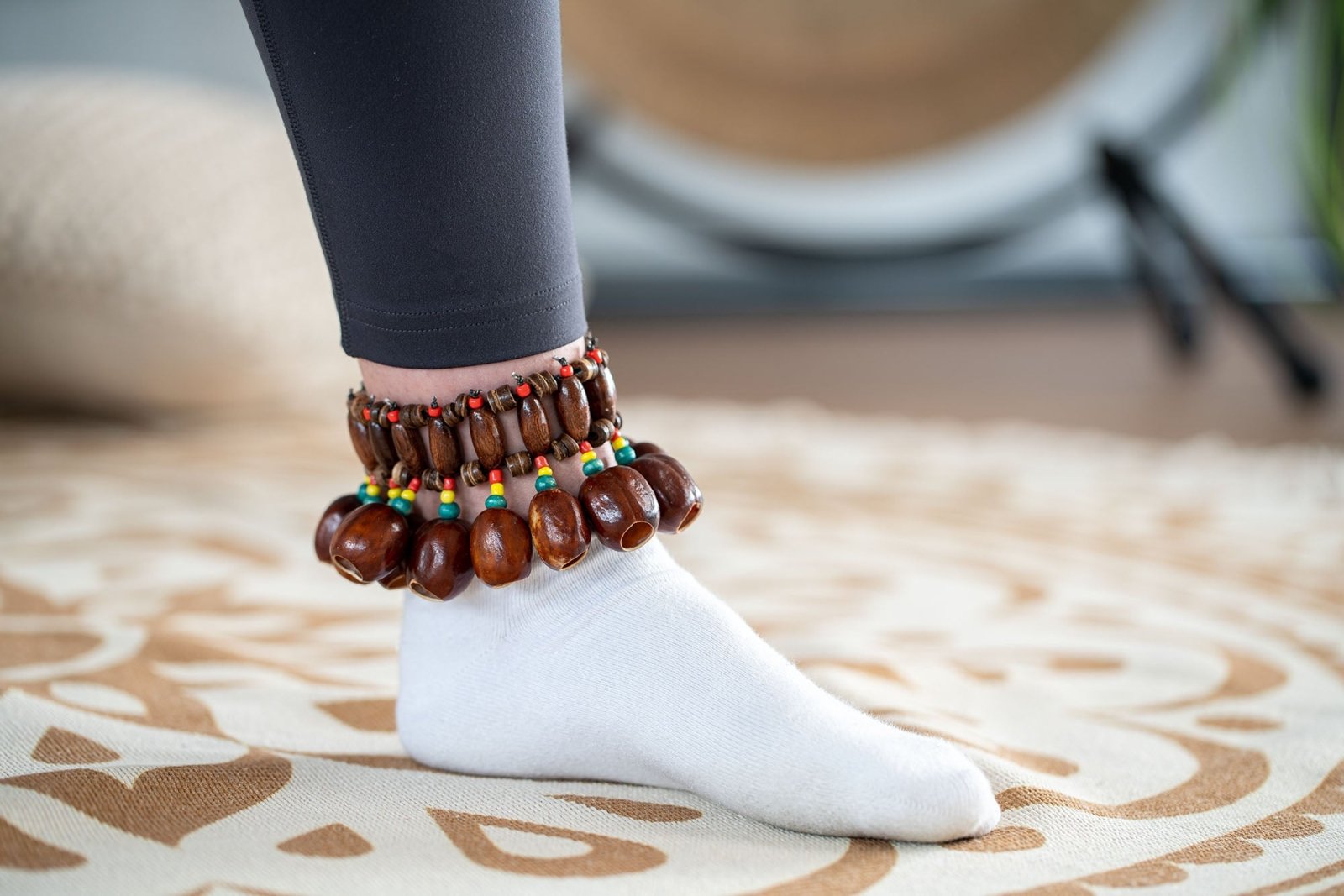 Pala seed nutshells, attached to a rubber bracelet, create a unique, versatile instrument.